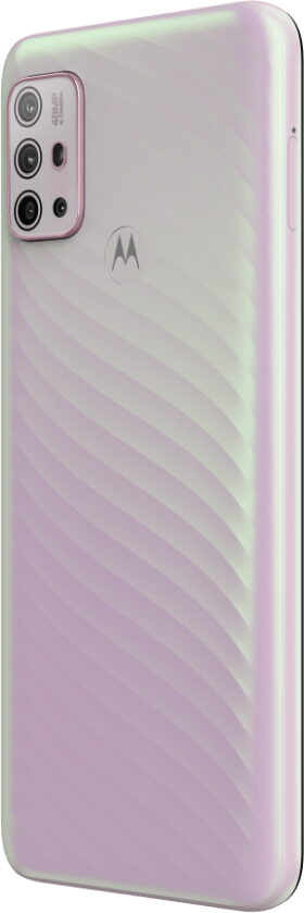 We hadden van deze Motorola Moto G10 al een lage resolutie afbeelding gezien maar nu hebben we dus ook de officiële persafbeeldingen te pakken. Hieruit wordt duidelijk dat de G10 in het grijs en parelwit uitkomt. Vooral de achterkant valt op, met z'n golvende kleurovergang. De foto's bevestigen eerdere geruchten over een 48MP Quad Camera.