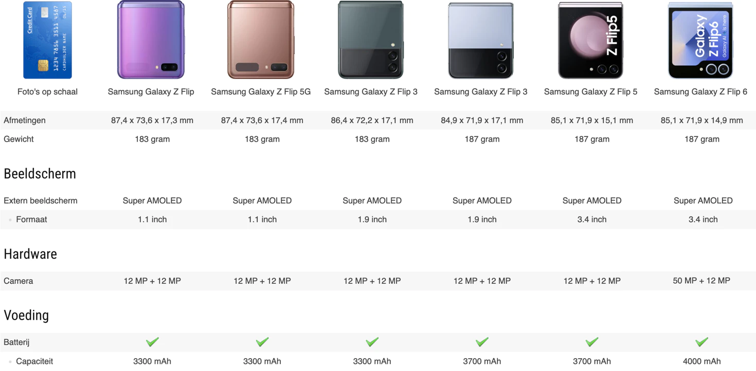 Natuurlijk is de batterijcapaciteit slechts één van de vele factoren die de batterijduur bepalen. Het door de jaren heen vergroten van de batterij helpt natuurlijk wel. Daar waar je tot en met de Galaxy Z Flip 4 de dag nauwelijks haalde zal dat vanaf de Flip 6 in de meeste gevallen wel lukken.