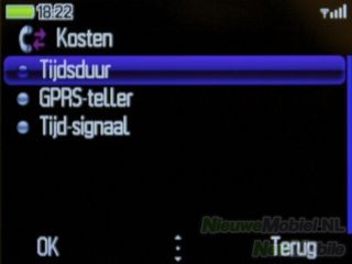Het gespreksoverzicht kan geopend worden met behulp van de beltoets. Vervolgens kun je de gewenste lijst kiezen. Voor gesprekskosten kunnen verschillende gegevens bekeken en bewerkt worden. De keuze bestaat uit bedrag, tijdsduur, GPRS-teller en tijd-signaal.