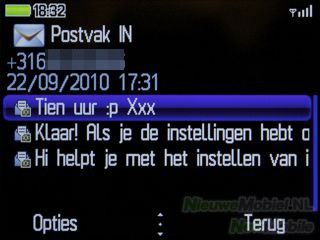 Het fysieke toetsenbord van de OT-802 is natuurlijk een van de meest in het oog springende uiterlijke kenmerken. De toetsen van het QWERTY-toetsenbord hebben wat betreft vormgeving overeenkomsten met de toetsen op de Blackberry Bold 9700. Jammer genoeg betekent die niet dat het toetsenbord net zo fijn werkt. Toch gaat typen heel aardig op OT-802. Met dikkere vingers met je wel goed uitkijken. De lay-out van het toetsenbord is goed verzorgd en de meest gebruikte symbolen zijn snel bereikbaar. Er is voorspellende tekstinvoer beschikbaar maar deze heeft niet een heel erg uitgebreid woordenboek en werkt niet echt fijn. In het postvak IN worden SMS en MMS-berichten door elkaar weergegeven. Berichten zijn gerangschikt op datum van ontvangst.