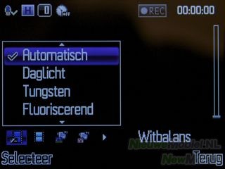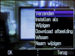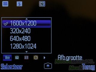 In het zoekvenster kan met de linker functietoets het optiesmenu geopend worden. De beschikbare opties zijn afbeeldingsgrootte, opname-mode, kwaliteit, zelfontspanner, beeldfrequentie, nachtstand, EV, witbalans, kleurinstelling, rand, mijn creaties, opslaglocatie, naar video en standaardinstellingen. Voor vrijwel alle instellingen zitten er snelkoppelingen verborgen onder fysieke toetsen. Het is een hele klus om die allemaal uit het hoofd te leren. Zoomen kan met behulp van de optische navigatietoets. Het nemen van een foto moet gebeuren door deze knop in te drukken.