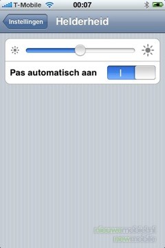 Het scherm is enorm helder in te stellen, maar de telefoon kan het ook zelf regelen. Hierbij geeft de gebruiker een minimum niveau van helderheid aan, en daarna past het zich aan in verhouding tot de beschikbare hoeveelheid licht in de omgeving. Dit is een mooi en noodzakelijk compromis tussen energie besparen en zichtbaarheid van het scherm. Als het scherm namelijk niet zichtbaar zou zijn was het hele toestel nutteloos aangezien nagenoeg alles ermee bestuurd wordt.