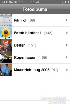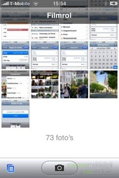 De foto's kunnen bekeken worden door op het filmrol pictogram te drukken. Er kan dan door middel van vegen over het scherm gescrold worden door de foto’s. Door er op te klikken worden ze beeldvullend en komen er de mogelijkheden tevoorschijn om ze te verzenden via de mail, of een weergave via een slideshow. Bij het kantelen van het toestel, kantelen de foto’s mee.