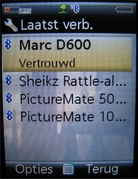 Gelukkig is daarentegen Bluetooth wel aanwezig en dit werkt naar behoren. Versturen van data naar een Bluetooth printer, PC of andere mobiele telefoon ging zonder enige moeite en werkte naar behoren. Wanneer de Bluetooth ingeschakeld is verbruikt het wel wat van de batterij, maar het lijkt in vergelijking tot andere Siemens modellen minder te zijn. Connectie met andere producten is tot op heden nog niet uitgevoerd, omdat niet duidelijk is welke instellingen voor deze BenQ gebruikt moeten worden.