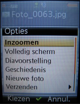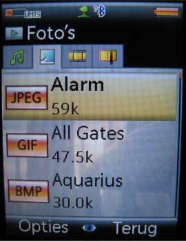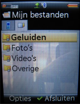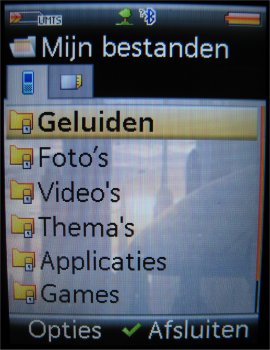 Bekijken van de video’s en de foto’s wordt gedaan in ‘Mijn bestanden’. Daar vind men alle foto’s en/of video’s gemaakt door of meegeleverd op het toestel. Verdere data zoals thema’s, games, toepassingen en beltonen vindt men ook in ‘Mijn bestanden’.