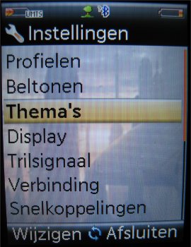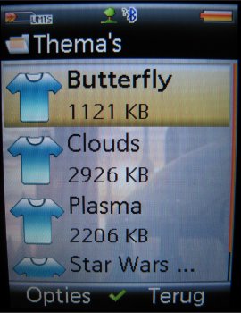 Wil men het menu wijzigen dan kan men een ander thema instellen. Standaard zijn er vijf thema’s extra meegeleverd op het toestel. Allemaal een lust voor het oog en allemaal met hun eigen beltonen, opstarttonen, startanimaties en tonen voor het openen en sluiten van het toestel.