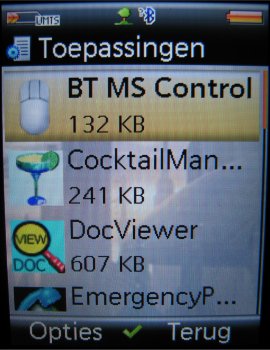 Alle programma’s worden hieronder kort besproken. De games volgen bij het onderdeel Games op de volgende pagina. Als eerste het programma BT MS controle wat in een programma is waarbij men het toestel gebruikt als een soort muis. De bedoeling is dat men door middel van het toestel een presentatie op een laptop bedient.