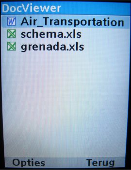 De Docviewer zegt eigenlijk al genoeg. Het toestel kan Words en Excel bestanden lezen. Helaas is Powerpoint er niet bij. De documenten worden redelijk goed getoond, maar er moet worden gemeld dat de applicatie wat weinig opties heeft en bepaalde tekens niet aankan. De gelijkwaardige applicatie in Samsung modellen werkt vele malen beter.