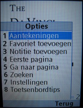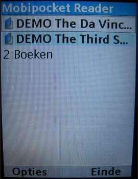 Mobipocket is een bekende applicatie in de mobiele wereld en geeft gebruikers de mogelijkheid om boeken te lezen op de telefoon. De versie standaard op de EF81 geleverd had twee voorbeelden van de Da Vinci code en The Third Secret aanboord.