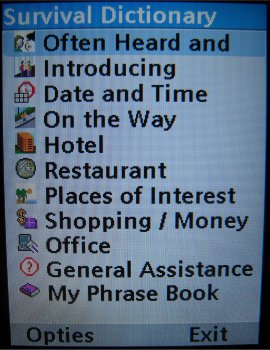 De Survival Dictionary is bedoeld voor personen die vele reizen. Het is een programma waarin een groot aantal verschillende standaard zinnen geplaatst zijn in diverse talen. Men kan deze bekijken, uit het hoofd leren of gebruiken tijdens het voeren van een gesprek. Een leuke extra aan het toestel voor mensen die veel reizen.