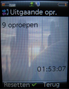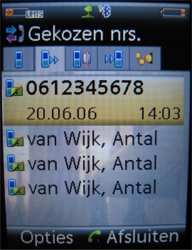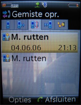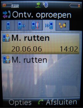 Gespreksoverzichten zijn weer te geven via het menu ‘Oproeplijst’. Men treft hier een erg eenvoudig overzicht aan van gemiste oproepen, ontvangen oproepen en gekozen nummers. Alles staat netjes gerangschikt met de datum en tijd erbij, zoals men ook verwacht. Ook nummers kunnen worden geëxporteerd naar zowel SIM als het telefoongeheugen, mits men die instelling van te voren maakt in het menuonderdeel ‘Contacten’. Meer hierover verderop in de review.