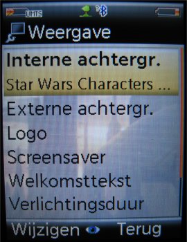 Qua instellingen hebben de schermen redelijk wat opties. De achtergronden kunnen worden aangepast, tevens kan een logo worden gekozen voor de providernaam, is de screensaver instelbaar zowel intern als extern, kan de helderheid ingesteld worden en is de verlichtingsduur voor beide schermen ook een optie. Het gehele onderdeel beeldscherm heeft een flinke verbetering gehad vanuit het Siemens tijdperk.