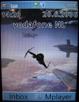 Op het standby scherm zijn naast een achtergrond ook de gebruikelijke dingen te zien zoals ontvangst, netwerknaam, batterijstatus en de datum/tijd. Onderin het scherm zijn twee functies voor de soft keys te zien die gewijzigd kunnen worden. Dit is handig om zo snel bij de meest gebruikte functies te komen. Ook de muziek speler, profielen, contacten en de inbox kunnen snel worden benaderd door de centrale toets in een bepaalde richting te selecteren.