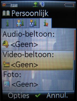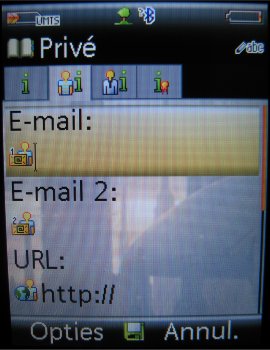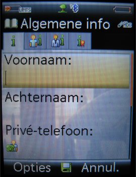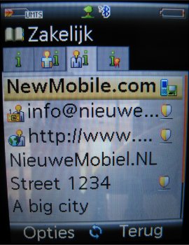 Per contact kunnen aardig wat gegevens worden opgeslagen, zoals meerdere telefoonnummers, faxnummer, e-mail adres, bedrijfsnaam, functie, adres, notitie en verjaardagsdatum. Ook kan er een foto of video worden ingesteld, die in beeld komt als de betreffende persoon belt. De contactpersoon kan ook worden ingedeeld in een voorgedefinieerde groep, zoals Kantoor, Familie, Privé, VIP, enz. Er is een mogelijkheid om zelf bellergroepen toe te voegen en de huidige groepen kunnen worden aangepast.