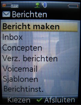 Al deze soorten messaging zijn terug te vinden bij ‘Berichten’ in het menu. SMS/MMS en e-mail hebben ieder een gescheiden postvak, zodat er geen verwarring ontstaat. De SMS-editor werkt redelijk, alleen de karakterteller is erg onlogisch. Deze begint namelijk bij 755. Ieder keer wanneer er een nieuw karakter wordt ingetoetst wordt deze waarde minder. Ervan uitgaande dat een SMS 160 karakters is komt men bij een raar aantal SMS-berichten uit. Het zou dan ook veel handiger zijn als deze waarde 160 was in plaats van 760. Dat scheelt weer een rekensommetje en daarmee ook de vraag hoe duur de boodschap gaat kosten omdat er makkelijker te zien is hoe lang het SMS-bericht is.