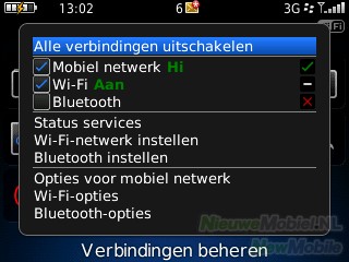 Bluetooth en WiFi instellen en in- en uitschakelen kan onder het kopje installatie, of bij verbindingen beheren, waarna het proces voor zich spreekt. Bij Bluetooth kan gekozen worden tussen zoeken en vindbaar maken. Als een apparaat in de lijst staat kan de betrouwbaarheidsstatus en codering ingesteld worden. Een bestand verzenden is geen probleem. Als je een bestand wil ontvangen dan moet je dat eerst aangeven in het mediagedeelte van het toestel.