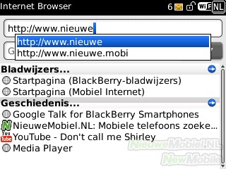 De browser opent met een overzicht van bladwijzers en de browsegeschiedenis. Ondanks dat er nu ondersteuning voor 3G-internet is, is de browser wat aan de trage kant. Een site wordt zo geladen dat hij volledig in beeld past waarna de gebruiker kan inzoomen om de tekst te lezen.