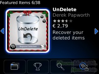 In het application center kunnen een aantal programma’s, zoals Facebook en Yahoo! Messenger, snel geïnstalleerd worden. Om de functionaliteit van je Blackberry nog verder uit te breiden is er de Blackberry App World. De apps zijn over het algemeen iets duurder dan op iPhone en Android. De keuze wordt langzaamaan groter. Betalen in de App World kan met PayPal, creditcard of, mits de provider dit ondersteunt, via je telefoonrekening. Geïnstalleerde applicaties komen in de map downloads te staan.