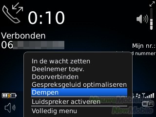 Verder is het mogelijk om tijdens een gesprek de gesprekspartner in de wacht te zetten, een deelnemer toe te voegen en kun je doorverbinden, de microfoon dempen, de luidspreker inschakelen, een nieuwe oproep starten of de voicemail bellen en adresboek, agenda of berichten bekijken.