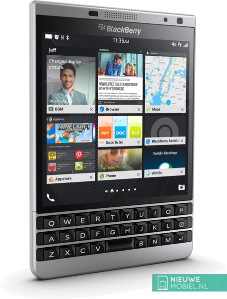 De BlackBerry Passport Silver Edition is de remake van de één jaar eerdere aangekondigde Passport. Dit opmerkelijk vormgegeven toestel beschikt over een volledig toetsenbord bestaande uit drie rijen en krijgt toch een groot hoge resolutie beeldscherm mee. En ditmaal is hij in zilverkleurig metaal uitgevoerd wat hem meteen een stuk duurzamer maakt.