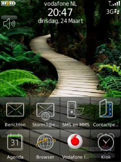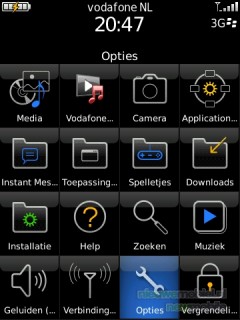 In het beginscherm worden de bovenste twee regels van het menu weergegeven. Hierdoor zijn altijd acht toepassingen snel bereikbaar. Alle toepassingen in het menu zijn door de gebruiker zelf te rangschikken. Het menu zelf is erg overzichtelijk en duidelijk, het vinden van de gezochte toepassing is dan ook geen enkel probleem. Bij elk pictogram in het menu staat beschreven wat de functie ervan is. Het uiterlijk van het menu is aan te passen door het lettertype, de lettergrootte en de tekenstijl te wijzigen. Wat wel een beetje vreemd is, is het feit dat er een knop is voor de browser en voor Vodafone live en een knop voor berichten en één voor e-mail terwijl de e-mailberichten ook in de berichtenmap verschijnen.
