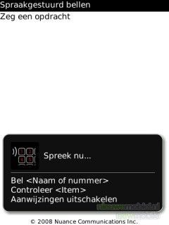 Ook voicedial wordt ondersteund door de Storm 9500 en dit werkt redelijk. De commando’s voor spraakgestuurd bellen kunnen in het Nederlands uitgesproken worden.