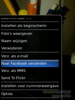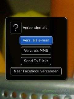 Het nemen van een foto vraagt ook nogal wat tijd. Na het indrukken van de afdrukknop moet het toestel nog een paar seconden goed stil gehouden worden om de foto te laten slagen. Als de foto is genomen komt er een scherm in beeld waar gekozen kan worden om de foto te verzenden, hem in te stellen als beginscherm of voor nummerweergave, naam wijzigen, verwijderen of nog een foto maken. Verzenden kan als e-mail of MMS en naar Flickr of Facebook.