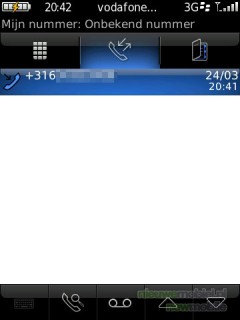 Door op de gesprekstoets te drukken wordt het virtuele toetsenbord geopend daarnaast zijn hier ook het oproepenlogboek en de contactpersonenlijst beschikbaar.