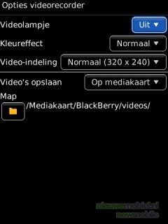 Ook voor het overschakelen naar de videocamera moet de menutoets gebruikt worden. De opties voor de videorecorder zijn het lampje, kleureffect en video-indeling.