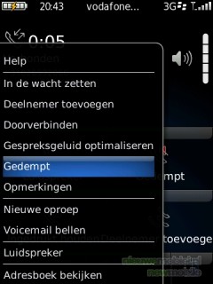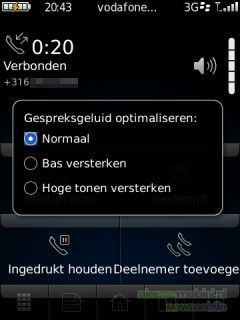 Door op de menutoets te drukken komen nog meer opties beschikbaar waaronder het gespreksgeluid optimaliseren door bas of hoge tonen te versterken. Ook doorverbinden en berichten bekijken behoren hier tot de mogelijkheden.