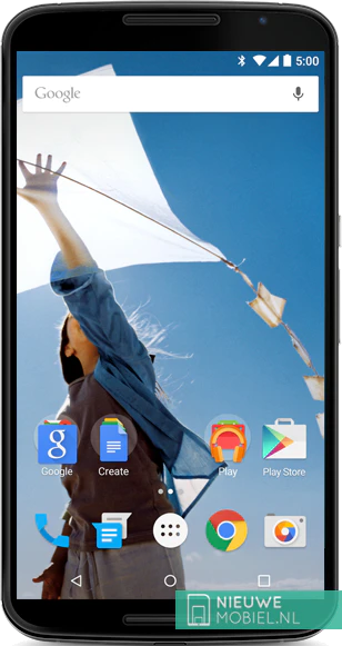 Natuurlijk komt de Google Nexus 6 met de allernieuwste Android-versie. Het was de eerste met Android 5.0 Lollipop. Android heeft dankzij Material Design een fris nieuw uiterlijk gekregen. Het systeem en apps ogen daardoor rustiger en overzichtelijker. Android Lollipop kent ontelbaar veel nieuwe functies waarvan lockscreen notificaties, ondersteuning voor meerdere gebruikers en een nieuwe batterijbespaarmodus er slechts een paar zijn.