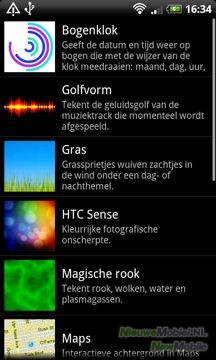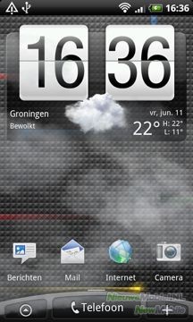 Wat betreft het menu hoefden we weinig verrassingen te verwachten van de Desire. We zien dezelfde Sense-interface als op de HTC Legend met dezelfde menu-indeling en keuze uit widgets. Het enige dat erbij is gekomen zijn de live wallpapers waar de Nexus One ook al over beschikt. Dit houd in dat je bewegende beelden of objecten op de achtergrond van je startscherm kan zien en die soms ook nog kan beïnvloeden met je vinger. Leuke extra is verder dat de klokwidget met omklappende cijfers een beeldvullende animatie toont van het weer als je de telefoon van schermvergrendeling afhaalt.
