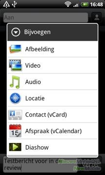 Een MMS opstellen kan eenvoudig door met de menutoets een bijlage toe te voegen aan het bericht.