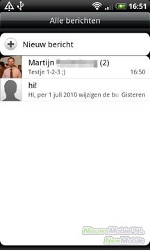 Verzonden en ontvangen berichten worden in het berichtengedeelte automatisch als gesprek gegroepeerd onder de naam van de betreffende contactpersoon. Een nieuw bericht opstellen kan eenvoudig door op de daarvoor bestemde toets bovenin beeld te drukken of door direct naar de berichtenuitwisseling met de gewenste persoon te gaan. Het venstertje om een bericht in op te stellen is in de verticale stand nog steeds wat aan de kleine kant maar prettig is dan weer dat het te beantwoorden bericht ook nog tegelijkertijd gelezen kan worden.