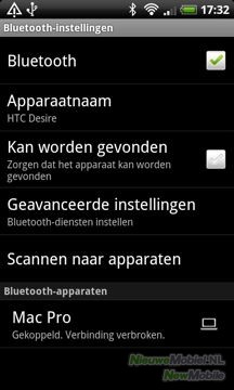 Wat betreft connectivity biedt de Desire het complete plaatje. WiFi en Bluetooth kunnen eenvoudig via een widget worden ingeschakeld en vervolgens is een verbinding snel gemaakt via het instellingenmenu.