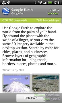 Dit vrij complete pakket kan natuurlijk nog verder uitgebreid worden via de Android Market. Voor applicaties is een beknopte beschrijving te lezen en eventueel twee schermafbeeldingen te bekijken. Dit keer hebben we geen last van missende applicaties in de Market. Behalve dan misschien programma’s die nog niet geschikt zijn gemaakt voor de afmetingen van het scherm van de Desire.