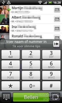 Een gesprek starten kan snel en eenvoudig via smartdial door op de telefoontoets onderin het startscherm te drukken. Net als bij de Legend komen dan wel Google én SIM-contacten in beeld. Natuurlijk heeft ook de Desire de beschikking over de contactenwidgets voor op de startschermen waarmee favorieten of contactpersonen uit andere groepen snel gebeld kunnen worden.