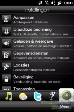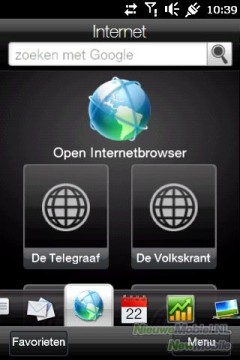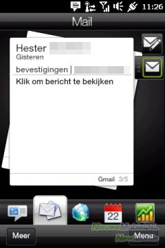 Vanuit het homescreen kun je naar rechts scrollen door een aantal tabbladen, die je via het instellingen-tabblad zelf in kunt stellen. Scrollen kan op twee manieren: door naar rechts te vegen over het touchscreen, of door je vinger op het scherm te drukken en over de icoontjes van het tabblad te bewegen. Standaard staan alle beschikbare tabbladen ingeschakeld. Er zijn onder andere tabs voor SMS, e-mail, contacten, internet, e-mail, het weer, muziek, twitter en je agenda.