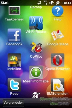Het menu met alle applicaties op de HD mini te bereiken gebruik je de aanraakgevoelige Windows-toets onder het scherm. Hier is de windows-erfenis het best zichtbaar door de beschikbaarheid van een aantal Microsoft programma's zoals Internet Explorer (wat gelukkig niet de standaard-browser is) en de mobiele versie van Office. Nieuwe applicaties kun je hier vinden in de Marketplace. Je kunt de iconen verplaatsen door ze aan te klikken en vast te houden terwijl je je vinger over het scherm sleept.