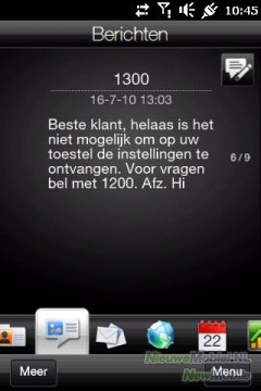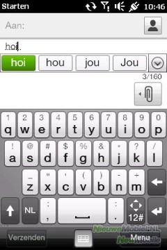 Je kunt met de HD mini uiteraard SMS- en MMS-berichten versturen. Zoals gezegd werkt het virtuele QWERTY-toetsenbord prima. Om je te helpen voorspelt het toestel welk woord je wilt spellen. Dat scheelt soms typwerk, maar in andere gevallen zit het woordenboek er behoorlijk naast, vooral bij minder gebruikte woorden.