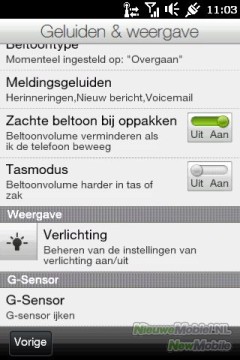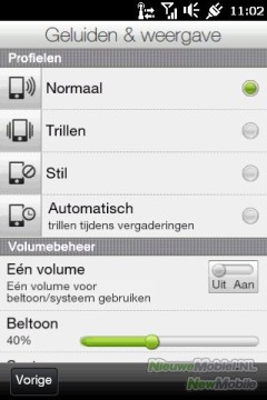 De naam van het toestel, HD mini, zegt het al, dit is een klein toestel. Dat heeft voordelen, maar ook nadelen. Het 3.2 inch TFT-scherm is aan de kleine kant vergeleken met andere smartphones, zoals HTC's eigen HD2 en de iPhone. De resolutie van 480x320 pixels is gebruikelijk in deze prijsklasse, en voldoet. De schermhelderheid is goed, maar is matig in vergelijking met AMOLED-schermen. In het weergave-menu kun je de helderheid van het scherm instellen, of ervoor kiezen deze automatisch aan te laten passen. In ons geval koos de telefoon ervoor de helderheid op 60% te zetten. Je kunt er ook voor kiezen zelf de helderheid te vergroten. De batterij zal daardoor echter sneller leeg raken.