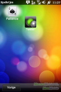 HTC levert het welbekende Teeter bij. Teeter is de digitale variant van de aloude knikkerbak. Wij vinden het een game die wel aardig is als tijdverdrijf als je je verveelt, maar erg verslavend is het spel niet. Naast Teeter kun je op dit toestel het Patience spelen.