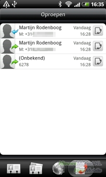 Via de ‘contacten’ applicatie is het gesprekkenoverzicht te benaderen. Het overzicht is een lijst met alle ontvangen, gemiste en uitgaande oproepen op tijdstip gerangschikt. Daarbij is er de mogelijkheid om één van deze categorieën te laten weergeven. Het is vanuit dit overzicht ook mogelijk direct terug te bellen of te sms’en.
