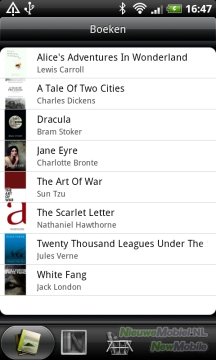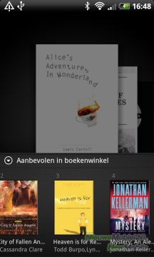 HTC levert bij de Incredible S een boeken applicatie, waarmee je op je smartphone boeken kunt lezen. Op dit moment vind je alleen nog engelstalige klassiekers die standaard geïnstalleerd zijn. Andere boeken kun je via een speciale shop aanschaffen. Daartussen vonden wij nog geen nederlandse titels.