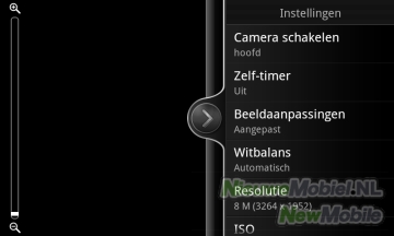 Voor zowel de primaire, secundaire als videocamera valt op dat er enorm veel instellingen mogelijk zijn. Misschien een beetje overbodig voor een mobiele telefooncamera, maar het kan natuurlijk ook nooit kwaad. Voor de primaire camera is het mogelijk de volgende instellingen te maken: zelf-timer, beeldaanpassen (belichting, contrast en verzadiging), witbalans (automatisch, gloeilamp, fluorescerend, daglicht en bewolkt), resolutie (8 MP, 5 MP, 3 MP, 1 MP en 640 x 384 pixels), ISO-waarde (100 t/m 800 of automatisch), weergave na vastleggen (minimaal 2 seconden), breedbeeld (5:3)/standaardformaat (4:3), geotagging, autofocus, gezichtsdetectie, sluitergeluid en raster. De secundaire camera heeft iets minder opties, namelijk: zelf-timer, beeldaanpassingen, resolutie (1280 x 768 of 640 x 384 pixels), weergeven na vastleggen, breedbeeld/standaardformaat, geotagging, spiegelmodus, sluitergeluid en raster.
