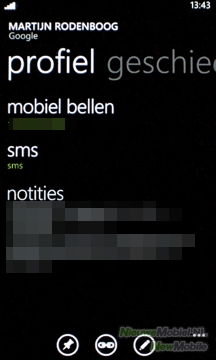 Onder de personentegel gaat meer schuil dan alleen een telefoonboek. Hier vinden we namelijk de personen-hub en daarmee kunnen ook allerlei internetaccounts, zoals e-mail, Google, Facebook en Twitter, gesynchroniseerd worden. Als de namen van contactpersonen uit verschillende bronnen precies overeen komen dan worden deze automatisch gekoppeld. Maar als dat niet het geval dan moet dit handmatig gebeuren. Dit zorgt er enerzijds voor dat je veel informatie bij elkaar hebt maar anderzijds word de contactenlijst zo ook erg lang. Het is namelijk niet mogelijk om net zoals bij Android alleen contacten met telefoonnummers weer te geven.