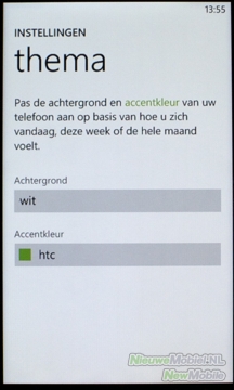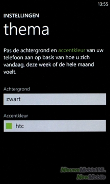 Het uiterlijk van het menu kan verandert worden door de accentkleur te wijzigen. Dit bepaalt de overheersende kleur in de gehele interface. Voor de achtergrondkleur kan gekozen worden uit wit en zwart. De zoektoets onder het scherm heeft niet, zoals bij Android, in elke app een specifieke toepassing maar opent te allen tijden Microsoft’s internetzoekmachine Bing.