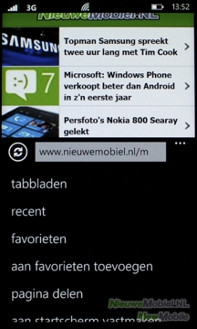 De browser van de Radar is logischerwijs Internet Explorer genoemd. Helaas stelde hij ons enigszins teleur. Pagina’s worden niet erg snel geladen en ook de lay-out van sites komt niet altijd goed uit de verf. Zoomen kan door op het scherm te tikken of te pinchen. Jammer genoeg worden stukken tekst niet passend gemaakt aan het scherm. De interface is verder wel duidelijk en met maximaal zes geopende tabbladen kan je het ook het overzicht behouden.