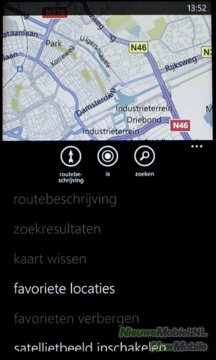 Dan heeft de Radar ook nog kaartensoftware met een soort navigatiefunctie. Het gaat hierbij om Bing Maps, oftewel Kaarten. Met dit programma kan een routebeschrijving opgesteld worden die bij elke richtingverandering een aanwijzing geeft. Maar alleen met behulp van een platte kaart en in de vorm van tekst, niet door gesproken aanwijzingen.