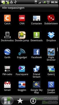 Het menu zelf kan als raster of lijst worden weergegeven en gesorteerd op alfabet of datum van download. In de rastervorm zijn de apps onderverdeeld over vlakken waar verticaal doorheen gescrolld moet worden. Onderin zien we drie tabbladen die de applicaties verdelen onder de kopjes alle toepassingen, frequent gebruikt en gedownload.